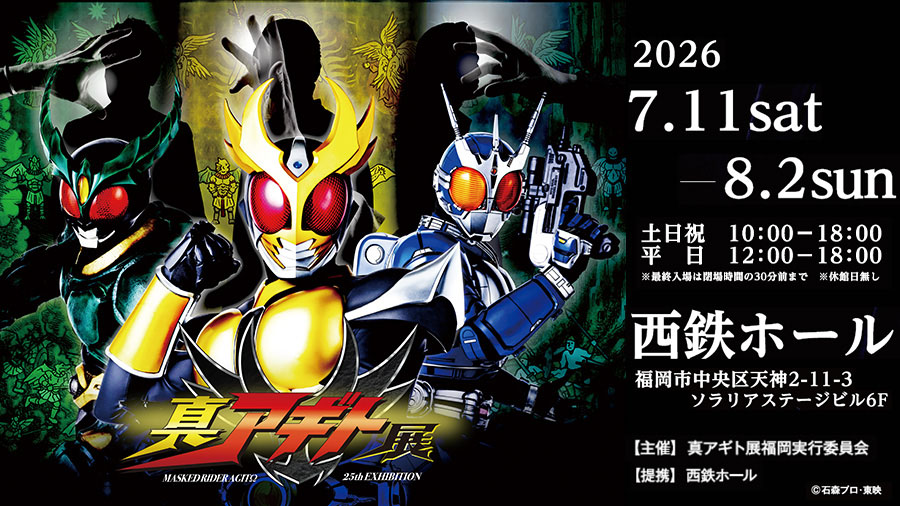 「真アギト展」福岡会場は、2026年7月11日(土)~8月2日(日)の期間、西鉄ホールにて開催。